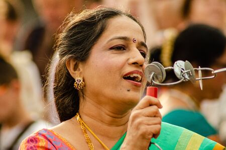 Portrait of a smiling Indian woman wearing saree and traditional clothes