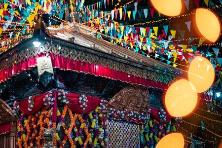 Kathmandu, Nepal - October 2 2019: Hindu Temple decorated with lights for Diwali Festival