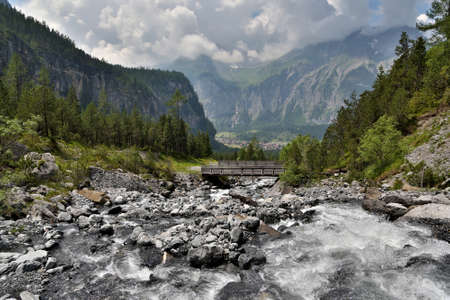 The river le Giffre riverscape at the alpine village of Sixt Fer a Cheval, France