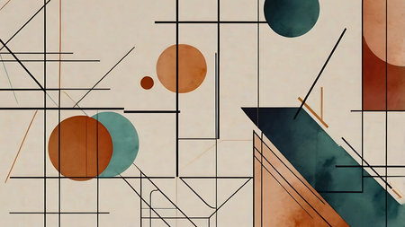 Abstract geometric background with overlapping circles and lines in watercolor style.