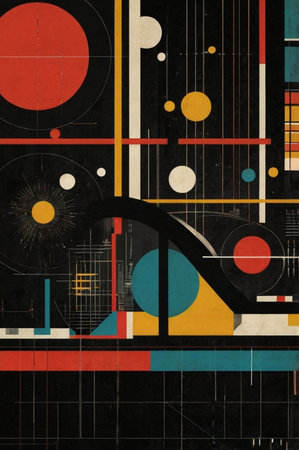 A Bauhaus abstract poster illustration designed for smartphone wallpaper, featuring geometric shapes, bold colors, and a minimalist aesthetic to create a visually striking and modern look