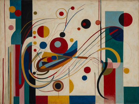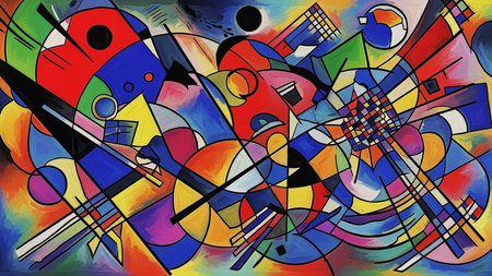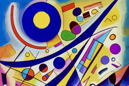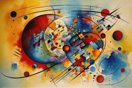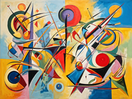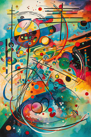 An AI generated illustration of an abstract painting in vibrant colors, shapes, and dynamic lines
