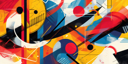 Experience the beauty of modern art with this vibrant abstract design featuring geometric shapes and dynamic lines, perfect for creative projects and visual inspiration.