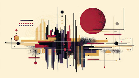 An abstract composition of graphic elements, perfect for seeking brands innovation and modernity. Ideal for technology or media projects, offering a contemporary visual appeal. Generative AI.