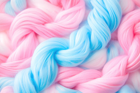 Close-up view of braided ropes in vivid blue, pink, and orange colors showcasing the intricate texture and interwoven design, symbolizing strength, unity, and resilience, making it ideal for creative concepts and stock photography. Generative AI