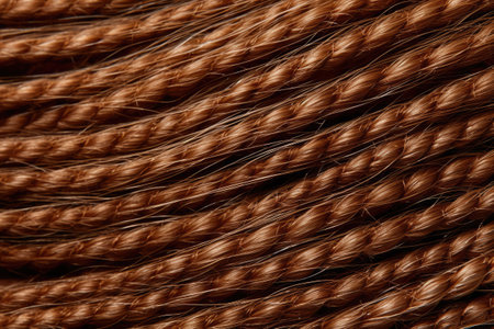 Texture of thin brown African braids, hair close-up braided in pigtails dreadlocks, Afro style