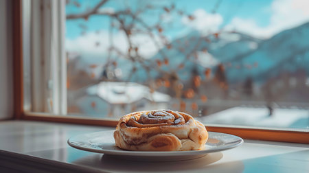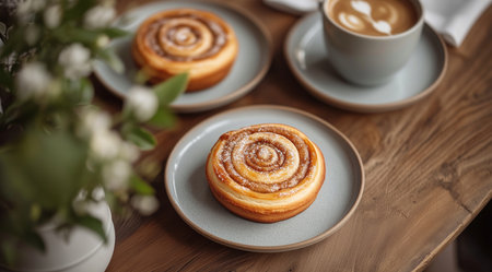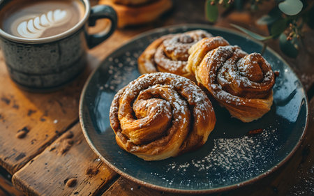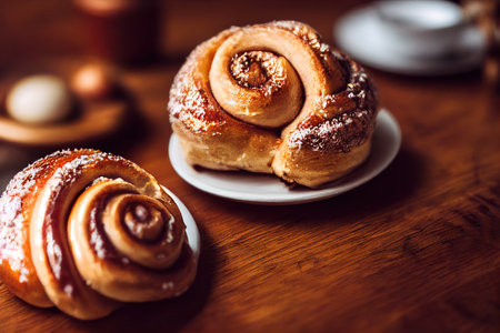 Traditional Swedish cardamom sweet buns, a coffee break with pastries. AI generated