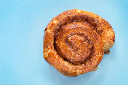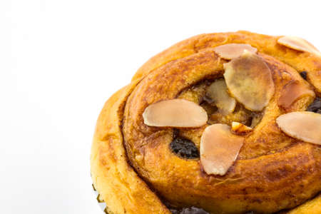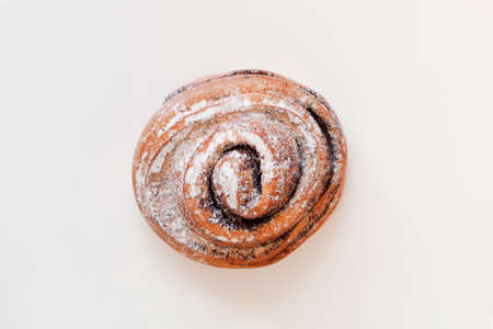 Sweet bun roll swirl isolated over white background, top view, flat lay