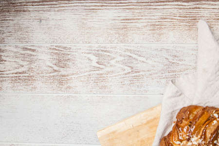Sweet pastry loaf and cookies on a wooden desk on the table, Breakfast time, sweet baked food concept