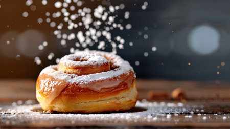Captivating image of cinnamon rolls floating with a sweet glaze and sugar, showcasing the beauty of desserts with appealing textures and colors for culinary inspiration.