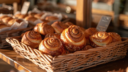 Artisan bakery showcasing swirls with fruit fillings, icing, and flaky layers...
