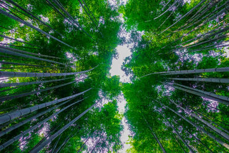 Bamboo forest with sky at Arashiyama, Kyoto, Japan.