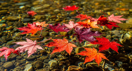 Autumn maple leaves in the Japanese garden. Selective focus.