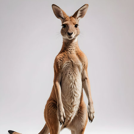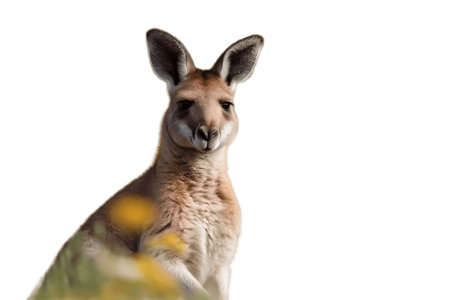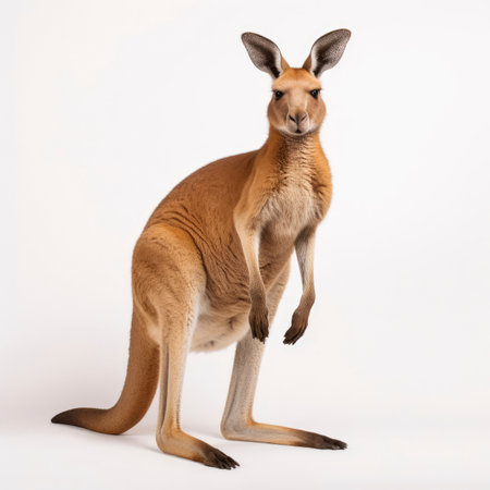 Kangaroo standing on a white background and looking at the camera
