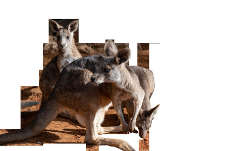 Group of kangaroos in different poses on transparent background. High quality photo