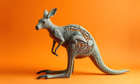 Kangaroo made of metal on an orange background. 3d rendering