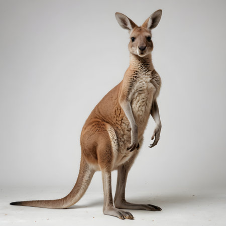 Kangaroo standing on white background, studio shot, side view