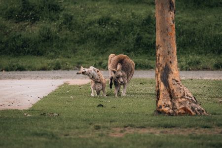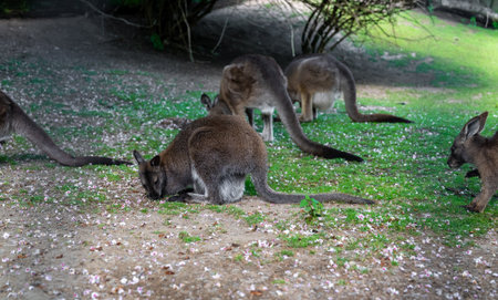Beautiful kangaroo feeding its baby outdoors Perth, Western Australia, Australia