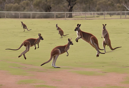 Desert Dancers - Kangaroos in Motion Amidst the Australian Outback. Generative AI