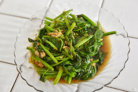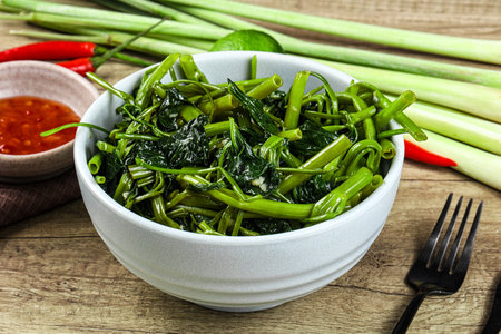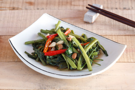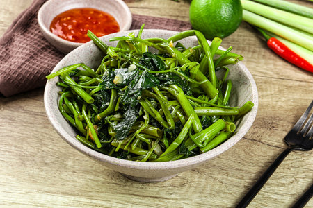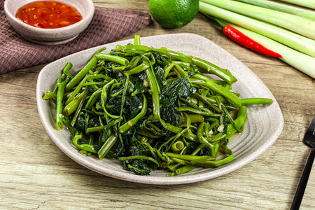 Stir-Fried Chinese Morning Glory or Water Spinach - Asian food style