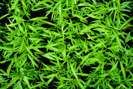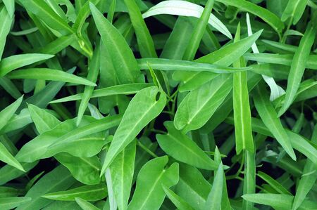Top view of fresh morning glory leaf as a background for sale in the supermarket, for making cooking, healthy food concept