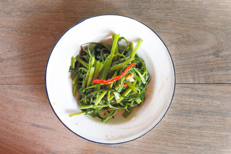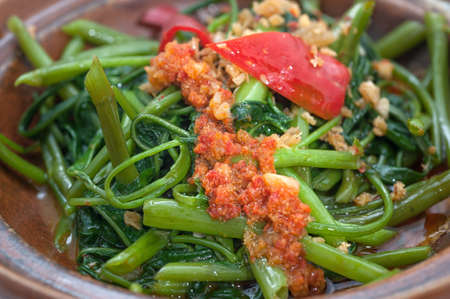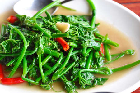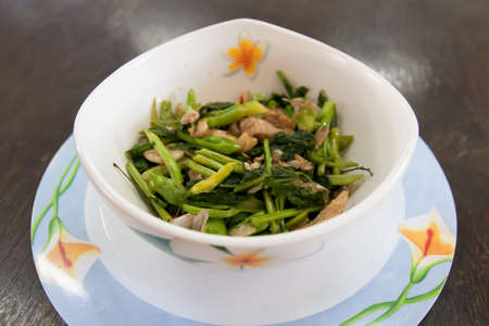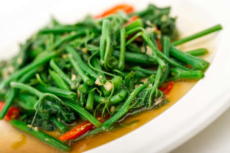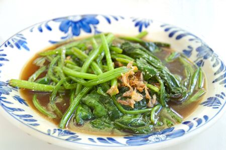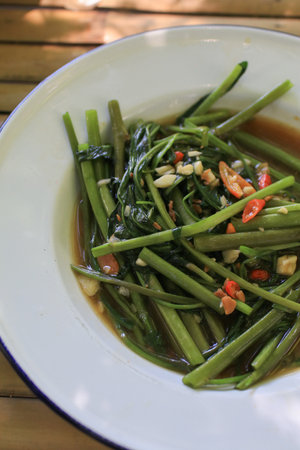 Thai food Stir Fried Water Spinachon,Stir Fried morning glory