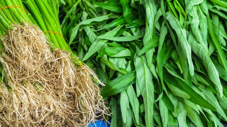 Vegetable and Herb, Pile of Water Spinach or Ipomoea Aquatica Selling at Fresh Market.