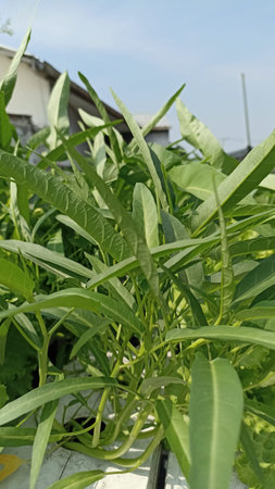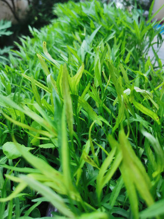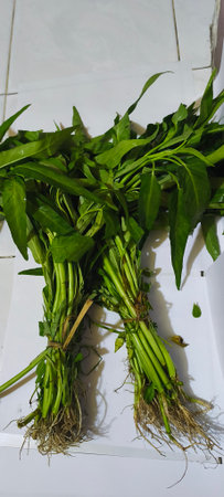 front view, Water spinach or Kangkung isolated on white background. Selective focus