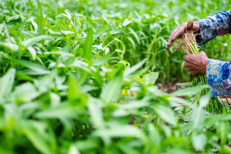 Pak-Boong(Thai word) Morning Glory fresh, soft vegetable leaves, morning glory in the hands of farmers, farm fresh, organic vegetables