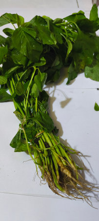 Chinese Spinach root or in Indonesia is called kangkung. white background
