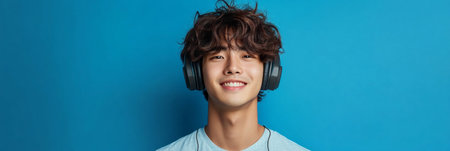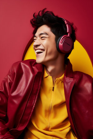 The image features an Asian male with headphones, exuding a sense of contentment , celebrating the simple pleasures of life and the power of music, banner