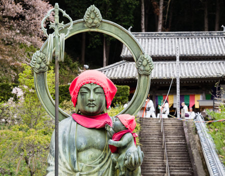 Anan, Tokushima prefecture, Japan - April 5, 2018: Jizo statue on the grounds of Byodoji, temple number 22 of Shikoku pilgrimage