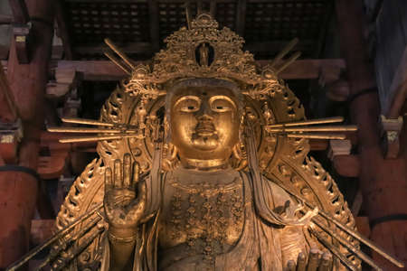Nara - May 31, 2019: Buddhists statues inside the great Todai-ji temple in Nara, Japan