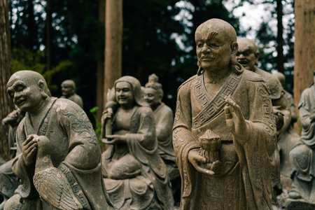 Hiroshima, Japan - January 2, 2020. Close-up of a statue at the famour Mitaki Dera Temple in Hiroshima Japan.