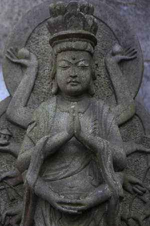 Stone Buddhist statue of a Thousand Armed Kannon in Japan