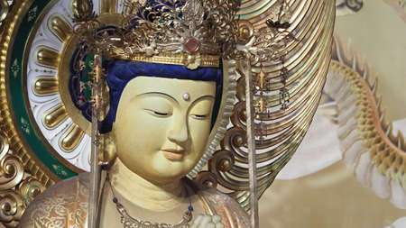 Buddha in serene meditation, main statue of the Ryozen Kannon WWII Memorial Shrine, Kyoto, Japan.