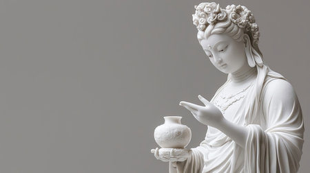 This elegant white statue of a goddess stands gracefully in a minimalist setting, representing peace and harmony. Perfect for interior decoration and cultural appreciation.