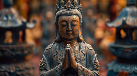 Closeup view of Guan yin or Kanon of Fukusaiji Japanese Temple of Nagasaki. Taken in August 2019.