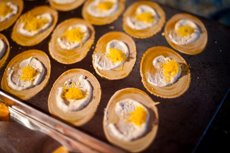Thai street food kind of Thai crispy pancake, thai name Kanom Buang, focus selective.