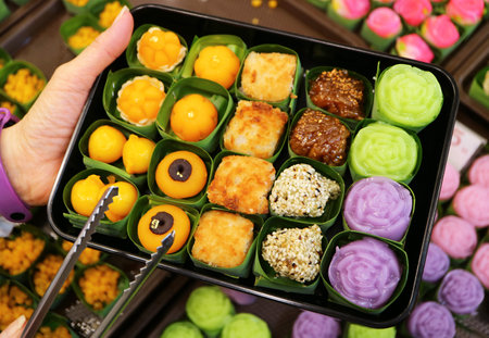 People Selecting Delectable Assorted Thai Traditional Desserts at a Sweets Shop