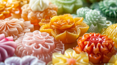 diverse array of sweet treats made from glutinous rice flour, offering various shapes and flavors to satisfy cravings and indulge in sweetness.AI Generated