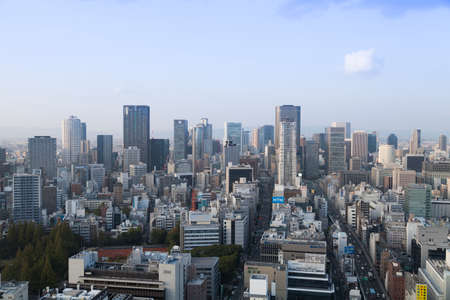 Top of modern buildings in Tokyo, Japan. Tokyo is the seat of the Emperor of Japan and the Japanese government.