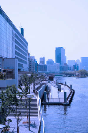 dust during daytime in a very polluted city - in this case Tokyo, Japan. Cityscape of buildings with bad weather from Fine Particulate Matter. Air pollution.