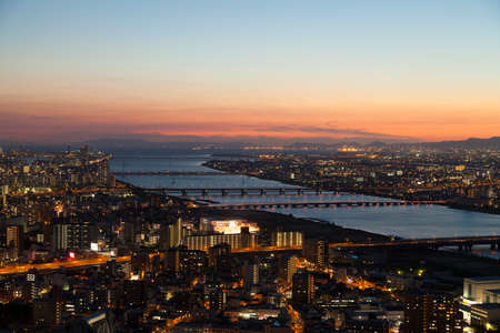 Nagoya cityscape and skyscraper with beautiful sky in twilight time