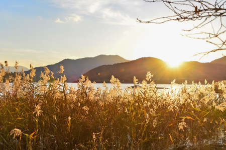 Mt. Fuji and Kawaguchiko lake at sunset, Japan