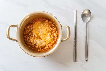 Korean Instant Noodle with Black Bean Sauce topped cucumber and boiled egg (Jajangmyeon or JJajangmyeon) - Korean food style