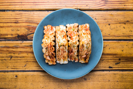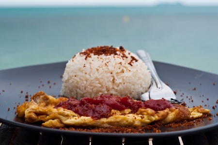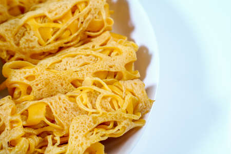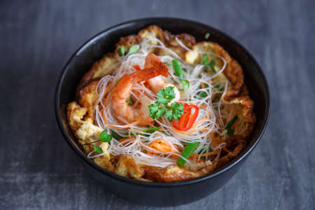 Fresh prepared asian deep fried crispy egg omelette. Traditional thai cuisine made of fresh ingredients.