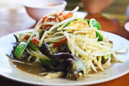 Thai food, Spicy papaya salad (Som Tum) on plate