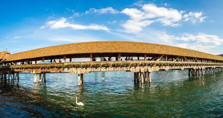 Panoramic view of the famous Chapel Bridge in Lucerne, Switzerland