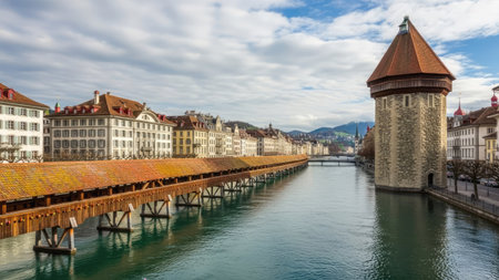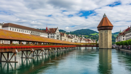 Panoramic view of the Chapel Bridge in Lucerne, Switzerland